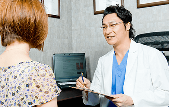 診察カウンセリングは院長の平田が丁寧に行います。お肌の状態を確認し、気になる症状や部位をお伺いし、最適な治療方法をわかりやすくご案内いたします。疑問、質問がありましたらご遠慮なくお尋ねください。
