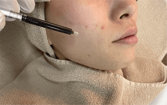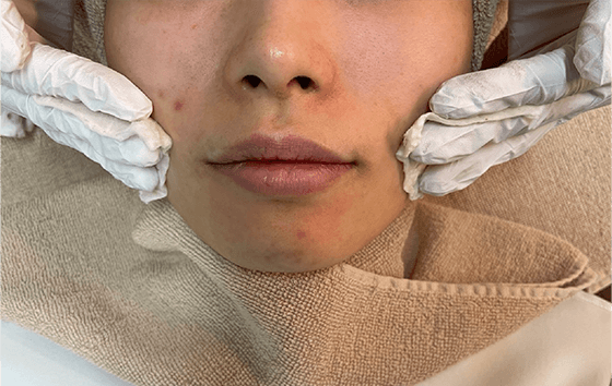 ※皮脂等がある場合は、皮脂腺を空洞にする為、圧出を行います。(必要な場合のみ)