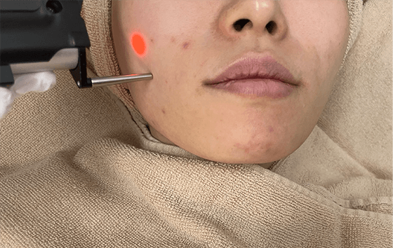 レーザー照射時の皮膚表面温度は40~42℃程度の為、痛みやダウンタイムがほとんどなく皮脂腺をしっかりと抑制する事で、根本的にお肌を良くしていく治療法です。