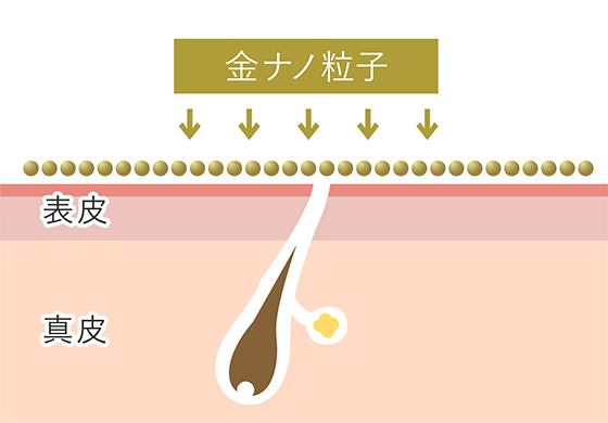 表皮にゴールドナノパーティクル(金の微粒子)を塗布します。